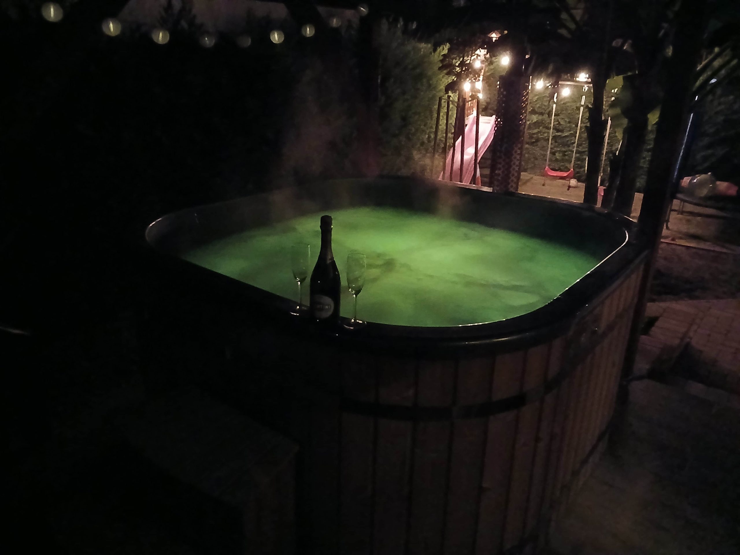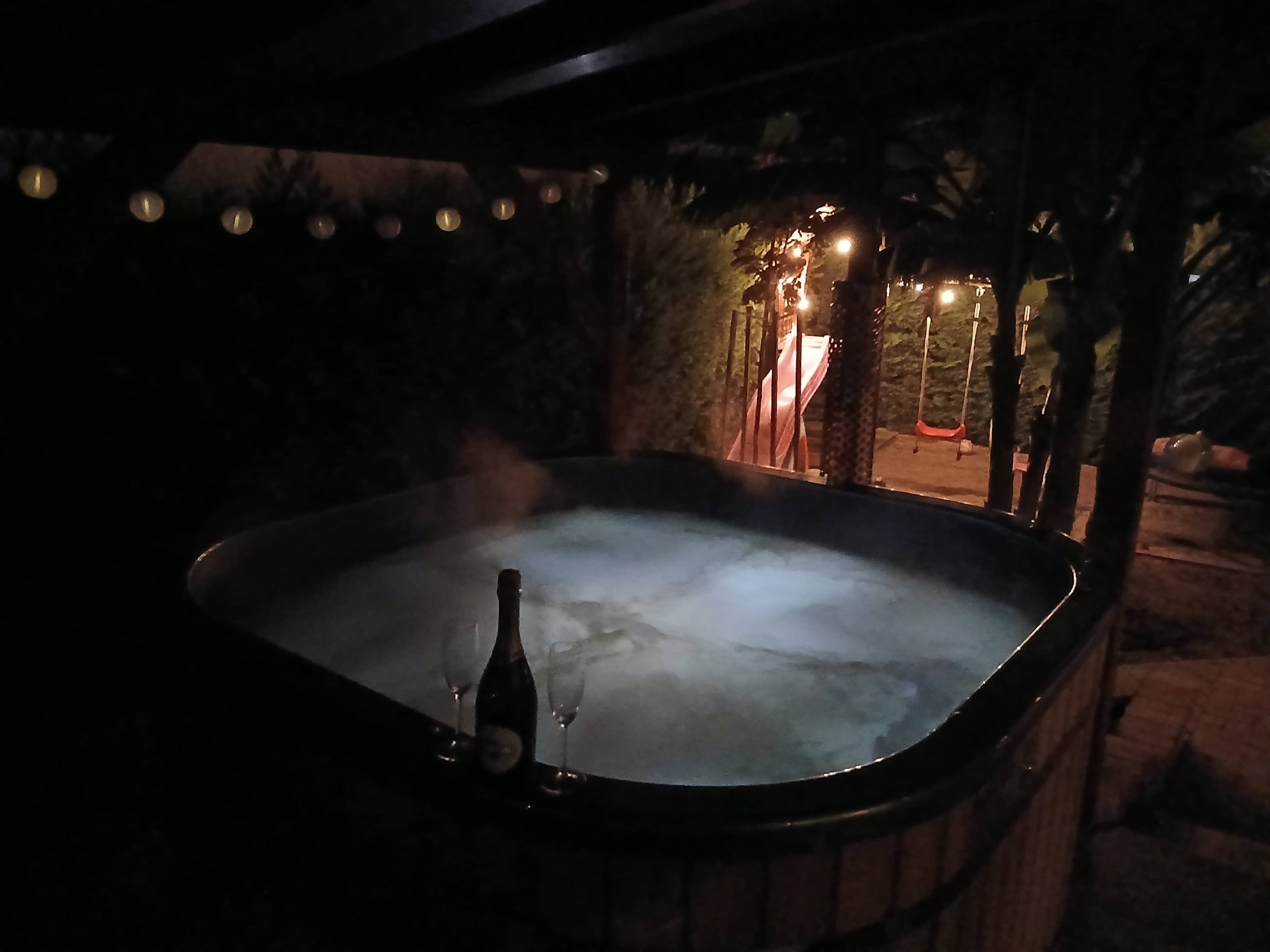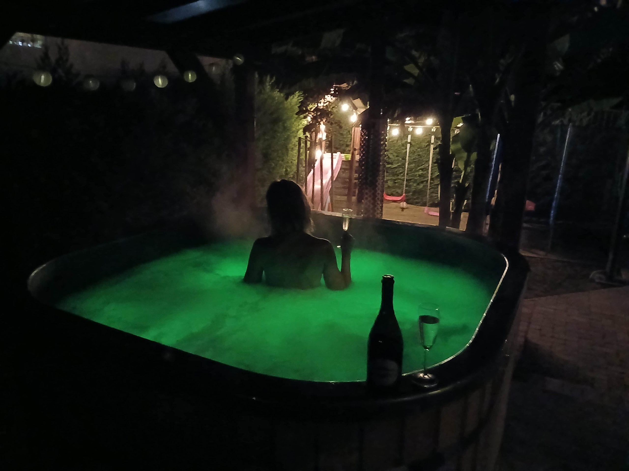 A horizontális integrált kályha nem vesz el egyetlen férőhelyet sem a kád belsejéből, mivel a kád ülőhelye alatt helyezkedik el, így ez egy teljes értékű 8 személyes dézsafürdő.