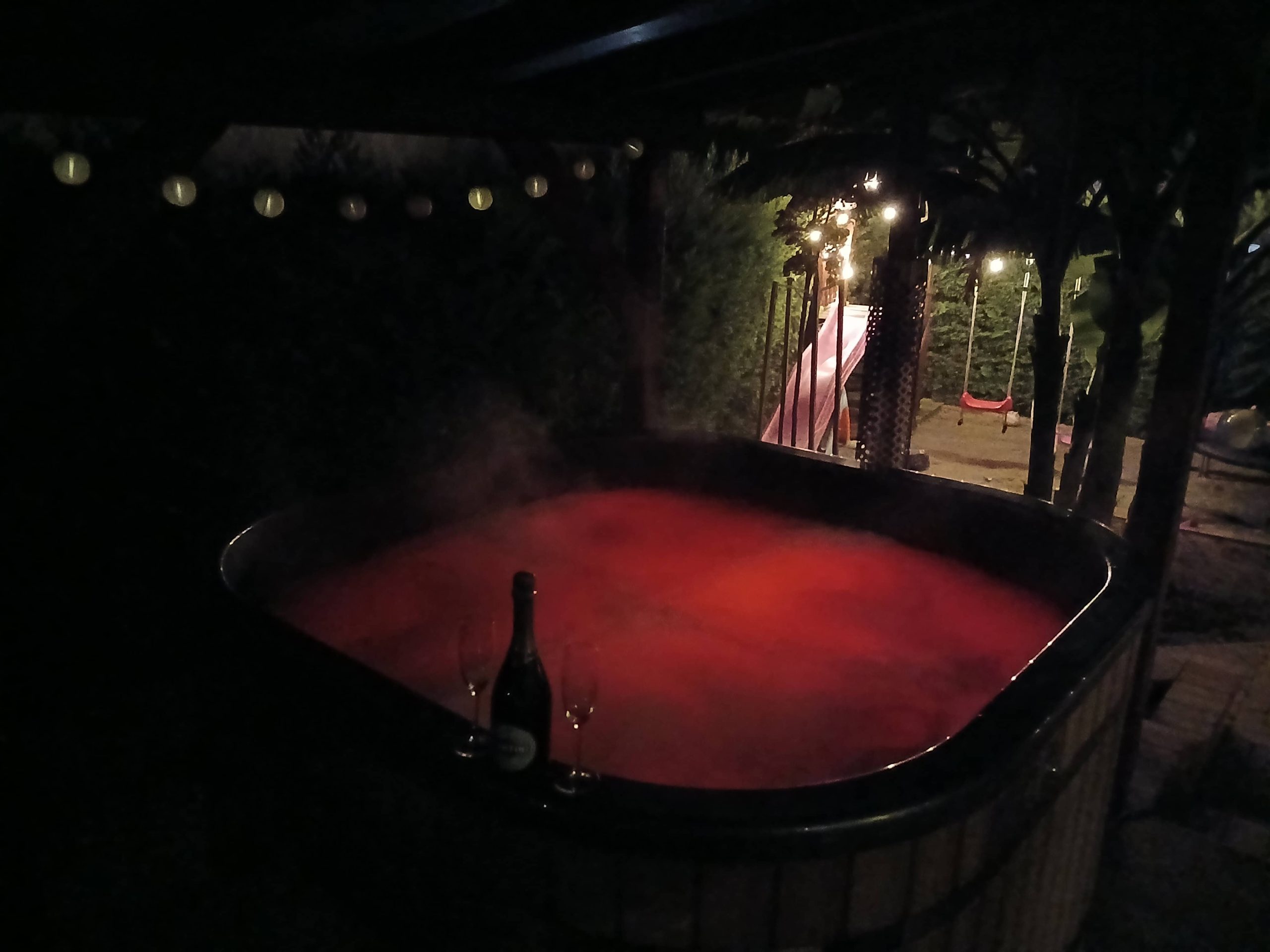 MALIBU – 8 SZEMÉLYES NÉGYSZÖG ALAKÚ AKRIL FATÜZELÉSŰ INTEGRÁLT KÁLYHÁS FŰTÉSSEL SÓZHATÓ