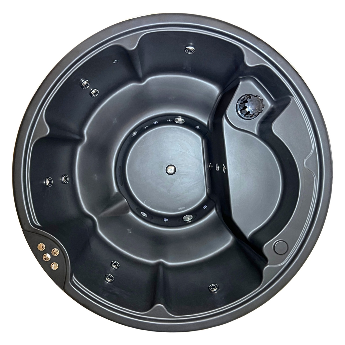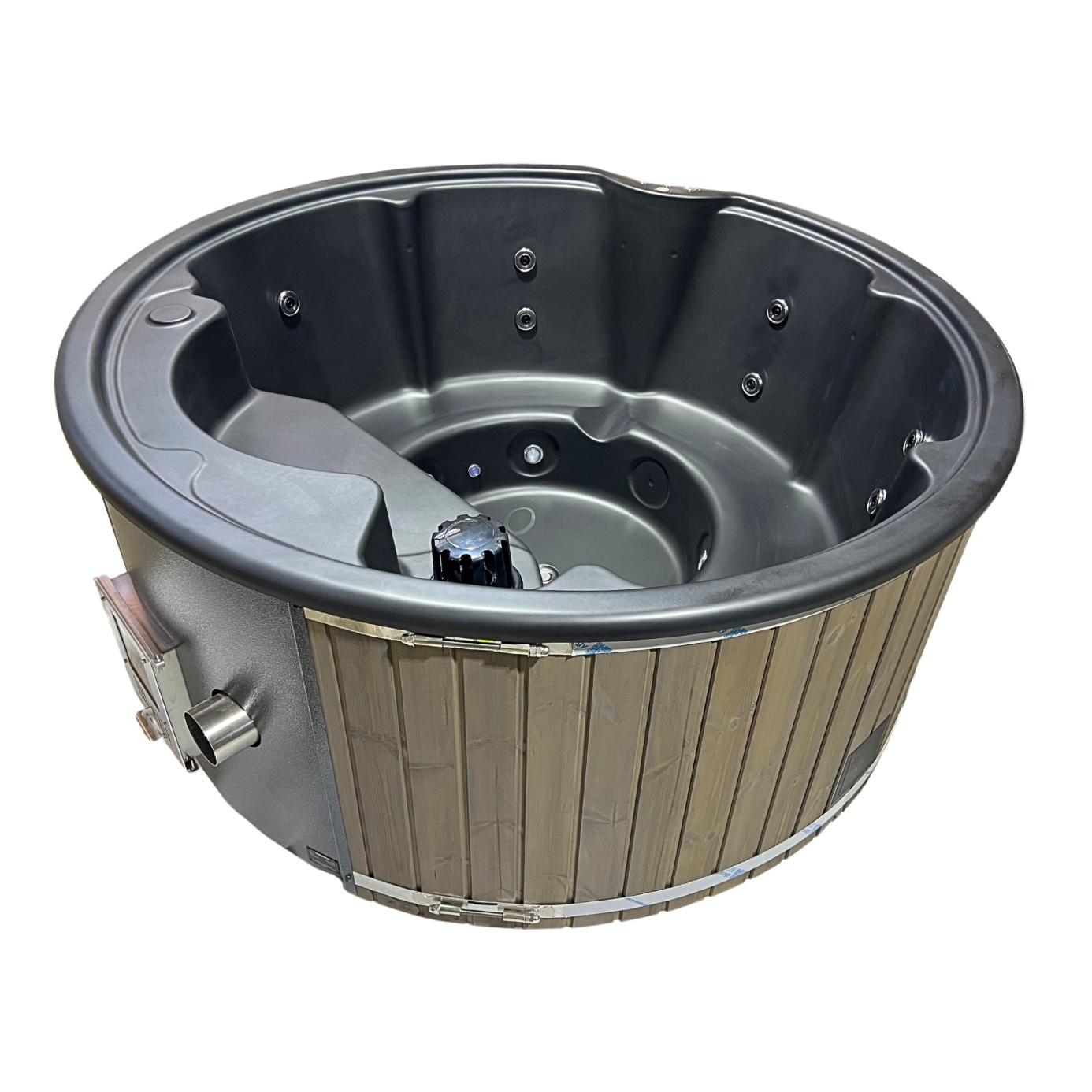 MEGÚJULT LUX IN - 4 SZEMÉLYES PRÉMIUM KÖR ALAKÚ AKRIL DÉZSAFÜRDŐ INTEGRÁLT KÁLYHÁS FŰTÉSSEL, SÓZHATÓ KIVITELBEN