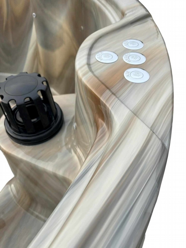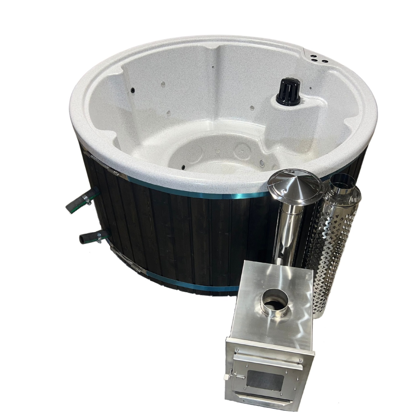 MEGÚJULT LUX IN - 6 SZEMÉLYES PRÉMIUM KÖR ALAKÚ AKRIL DÉZSAFÜRDŐ KÜLSŐ KÁLYHÁS FŰTÉSSEL, SÓZHATÓ KIVITELBEN, MÁRVÁNY SZÍNEKBEN