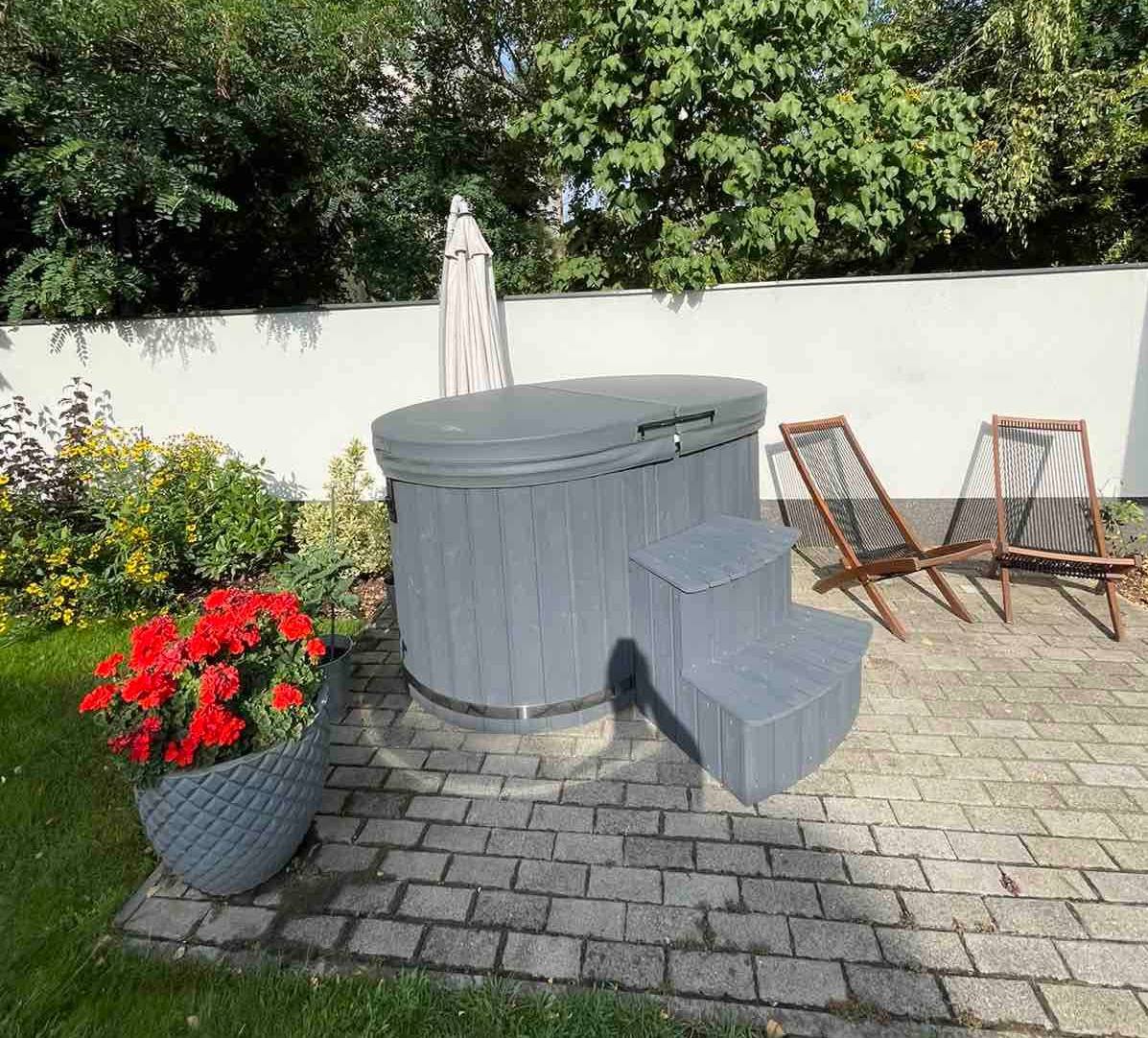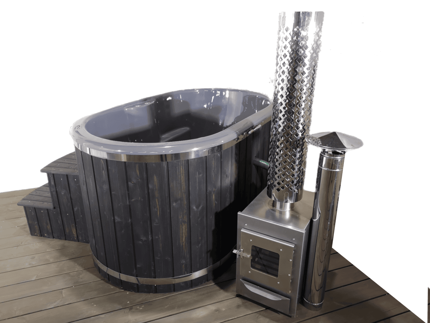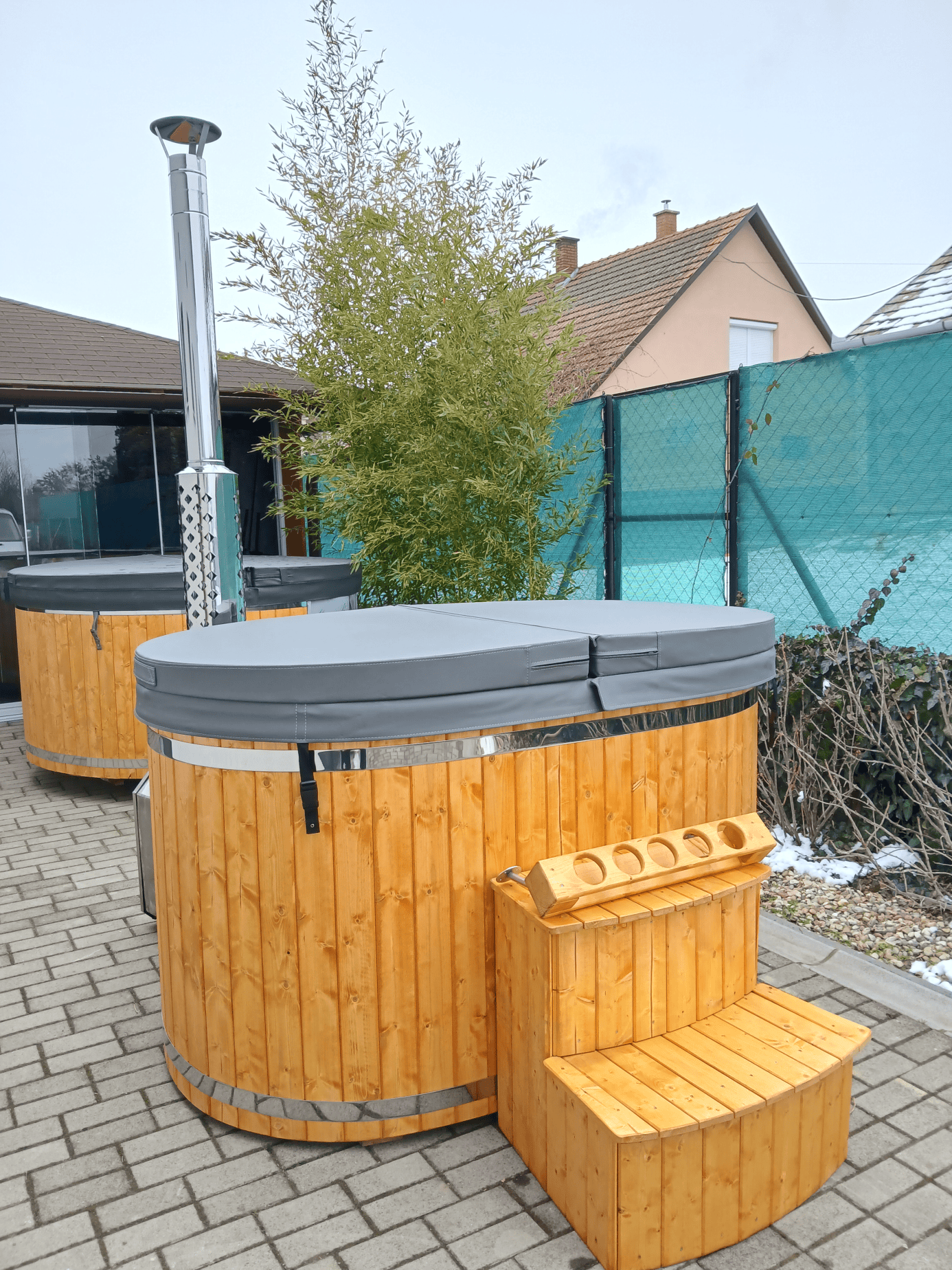 OVAL – 2 SZEMÉLYES DÉZSAFÜRDŐ ÜVEGSZÁLAS BETÉTTEL, KÜLSŐ (AISI304) KÁLYHÁS FŰTÉSSEL SÓZHATÓ