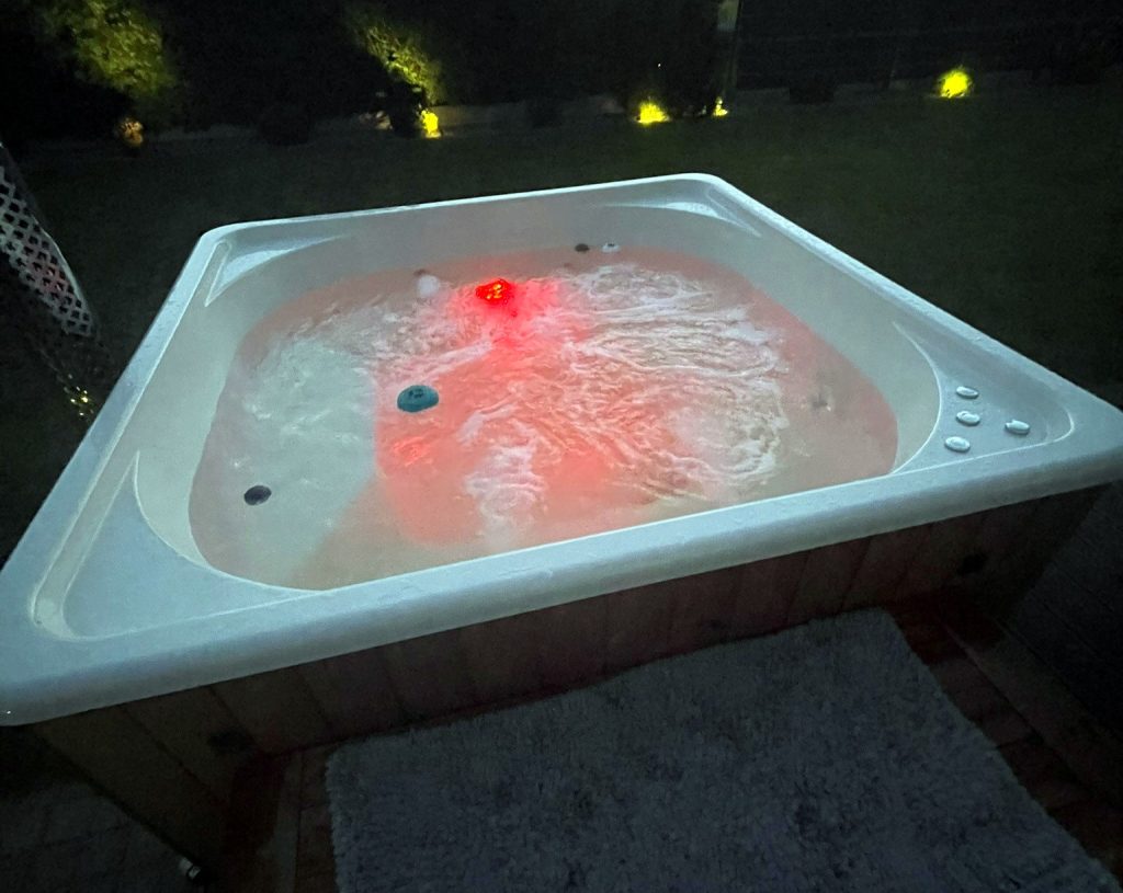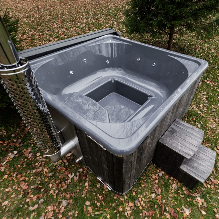 - Rozsdamentes acél hevederek a pezsgőfürdő körül
