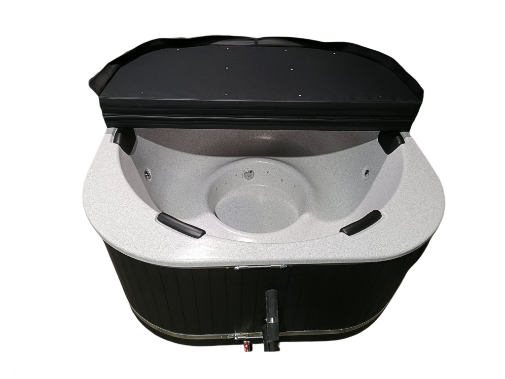 RUBIN - 6 SZEMÉLYES PRÉMIUM NÉGYSZÖG ALAKÚ AKRIL DÉZSAFÜRDŐ, SÓZHATÓ KIVITELBEN, KÜLSŐ KÁLYHÁS FŰTÉSSEL